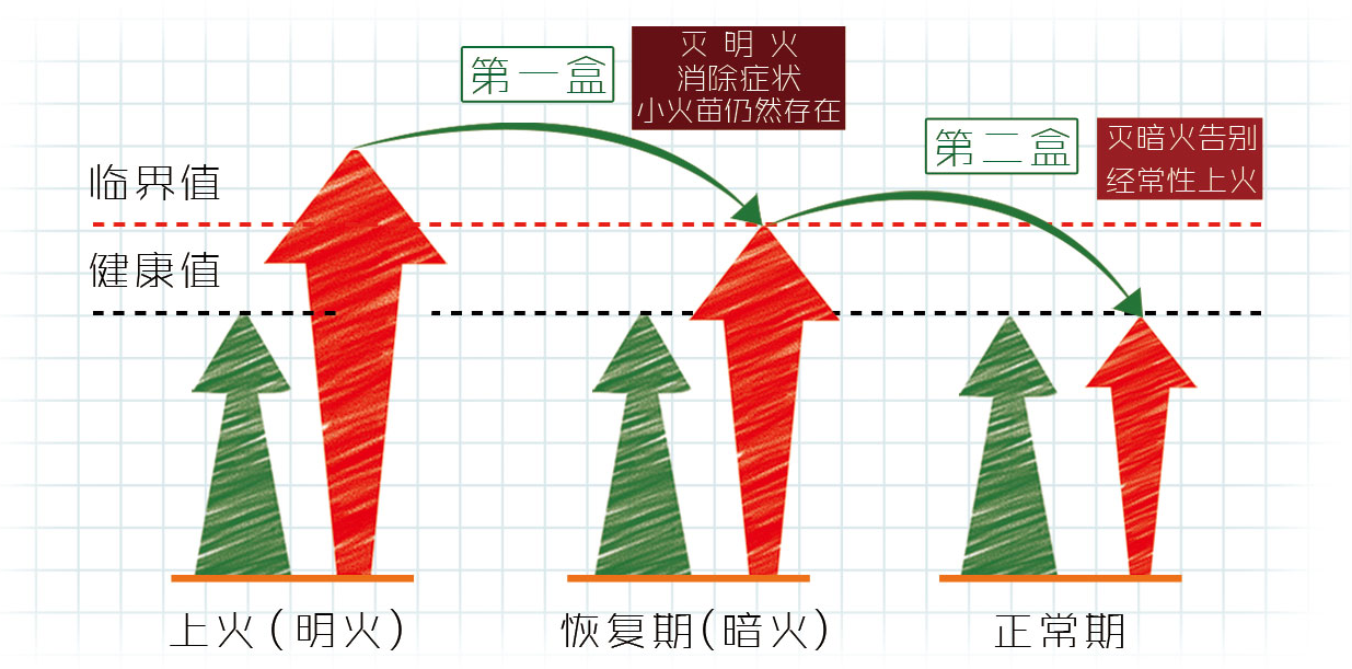 “火”是形容身體內某些熱性的癥狀。上火也就是人體陰陽失衡后出現的內熱證候,如眼睛紅腫、咽喉腫痛、牙齦腫痛、口角糜爛、便秘、尿黃等。